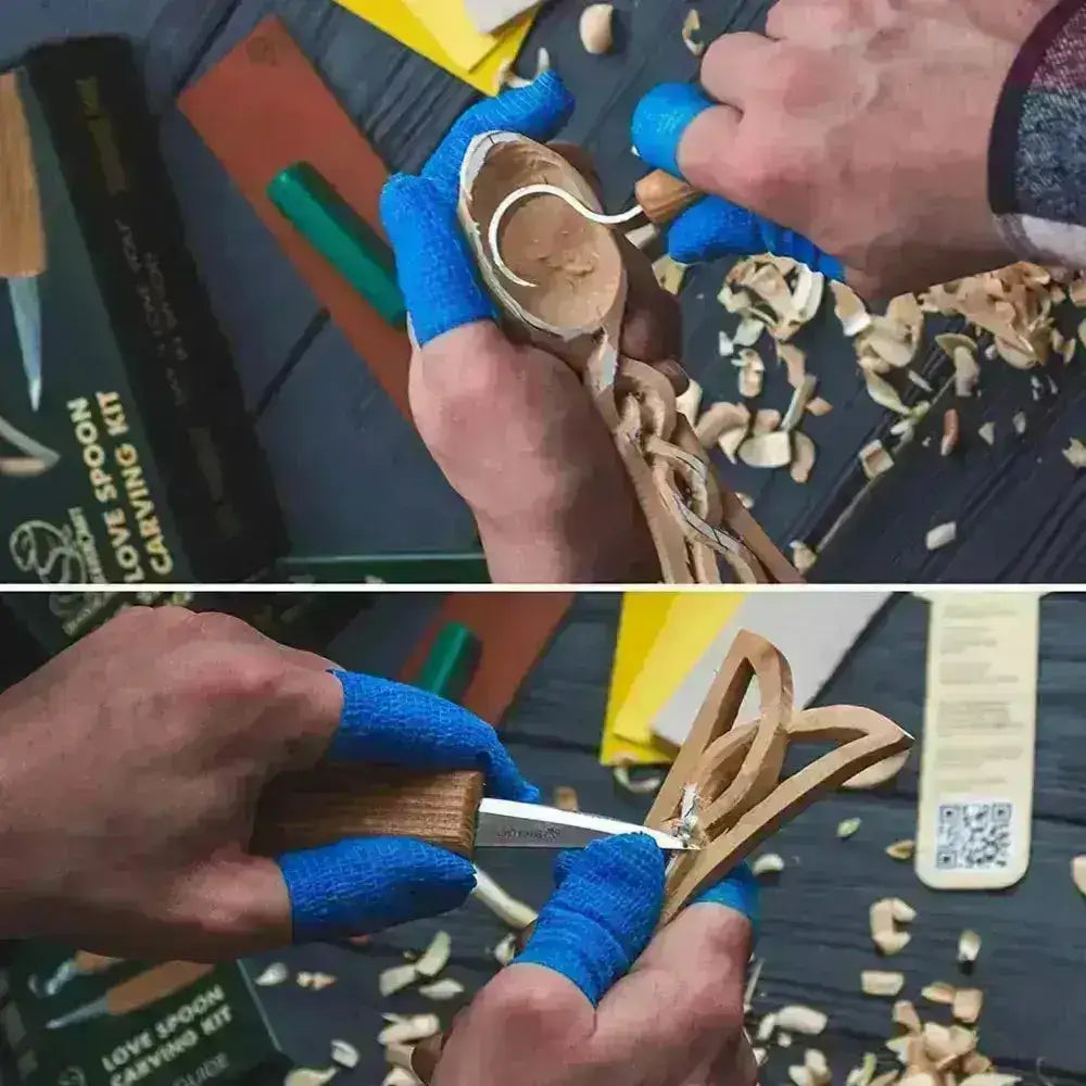 Træskæresættet med skeer indeholder alt, hvad du behøver for at komme i gang med at udskære og lave en flot træske.
