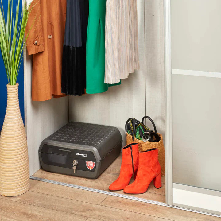 Beskytt dine viktigste verdier, enten det er dokumenter, digitale medier eller airsoft- og hobbyutstyr med denne Brannsikkre og Vanntette Sikkerhetsboksen fra Masterlock. Denne robuste boksen kombinerer høy brannmotstand med fullstendig vannbeskyttelse, perfekt for hjem, kontor og utstyrslagring.
