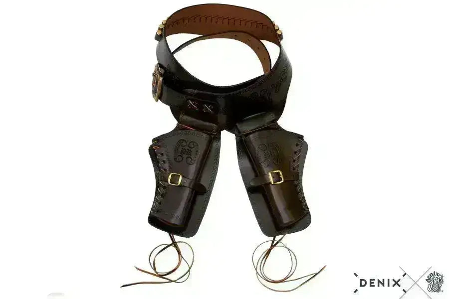 Denix Western belt with holster for both left and right side. Made of leather - top quality cowboy belt!