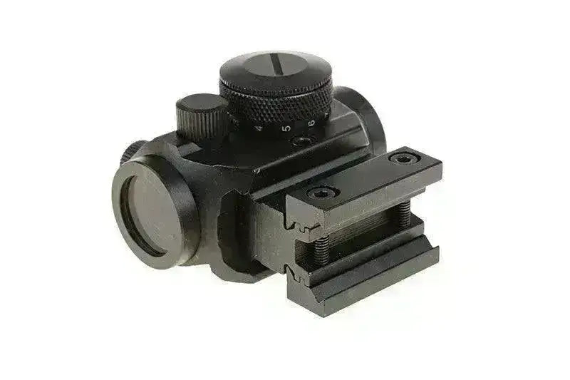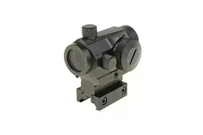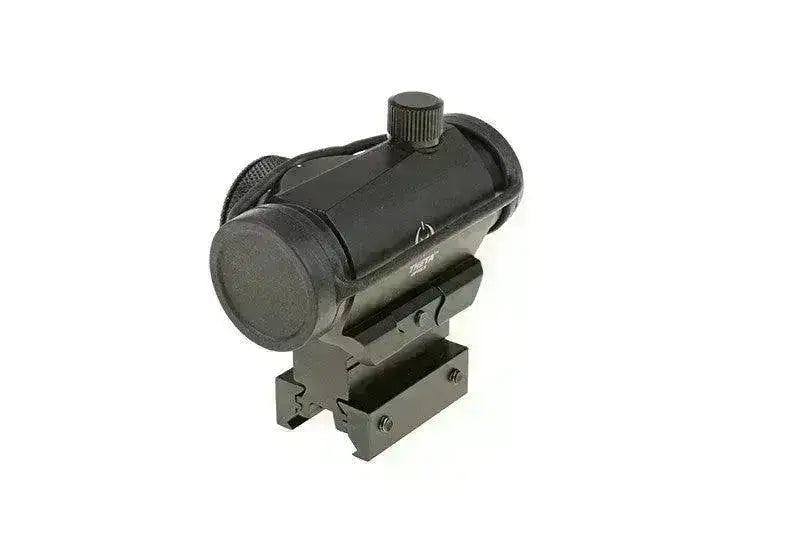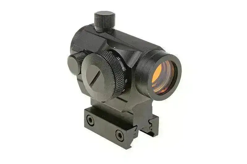 This small and compact red dot sight from Theta Optics is made with a metal housing and is powered by a CR2032 battery. You can choose whether you want it to be illuminated with a red or green dot and you can adjust the brightness in 7 different levels of strength. The sight itself can be easily adjusted in both height and width and it is easily mounted on most 21mm rails. What is perhaps most ingenious about this sight here is the possibility of being able to mount it in two ways. A high mount and a low profile mount. This means that you can easily mount it according to your own preferences.