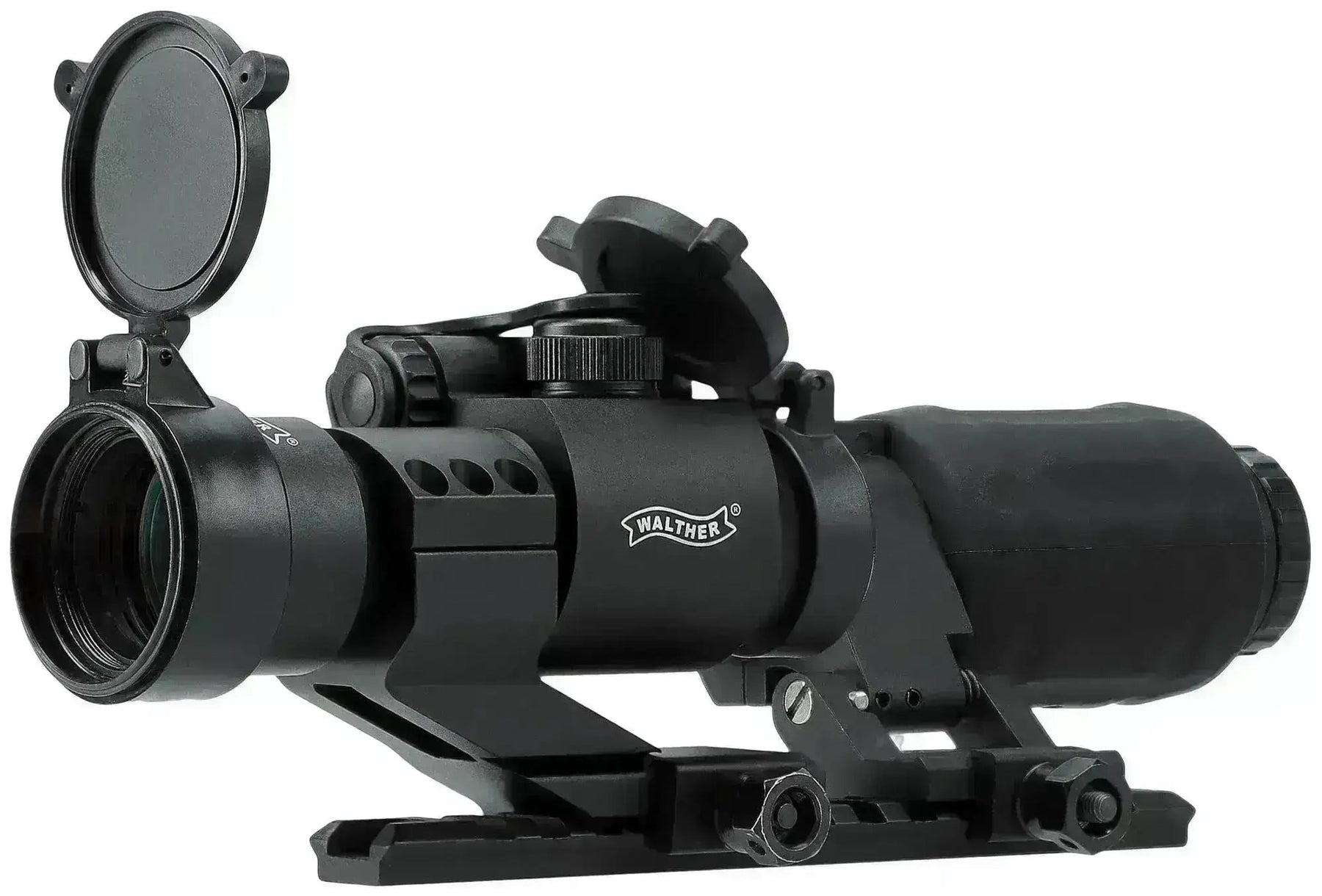 Umarex's MPS (Magnifying Point Sight) is a combination of a good red dot sight, as well as a 3x magnification, which when not in use can be tilted out to the side. This makes this set suitable for almost any occasion, whether in the open field or in CQB situations. The set also comes with a 15.5cm long 21mm rail and an Allen key so you can adjust the red dot sight in the side and height.