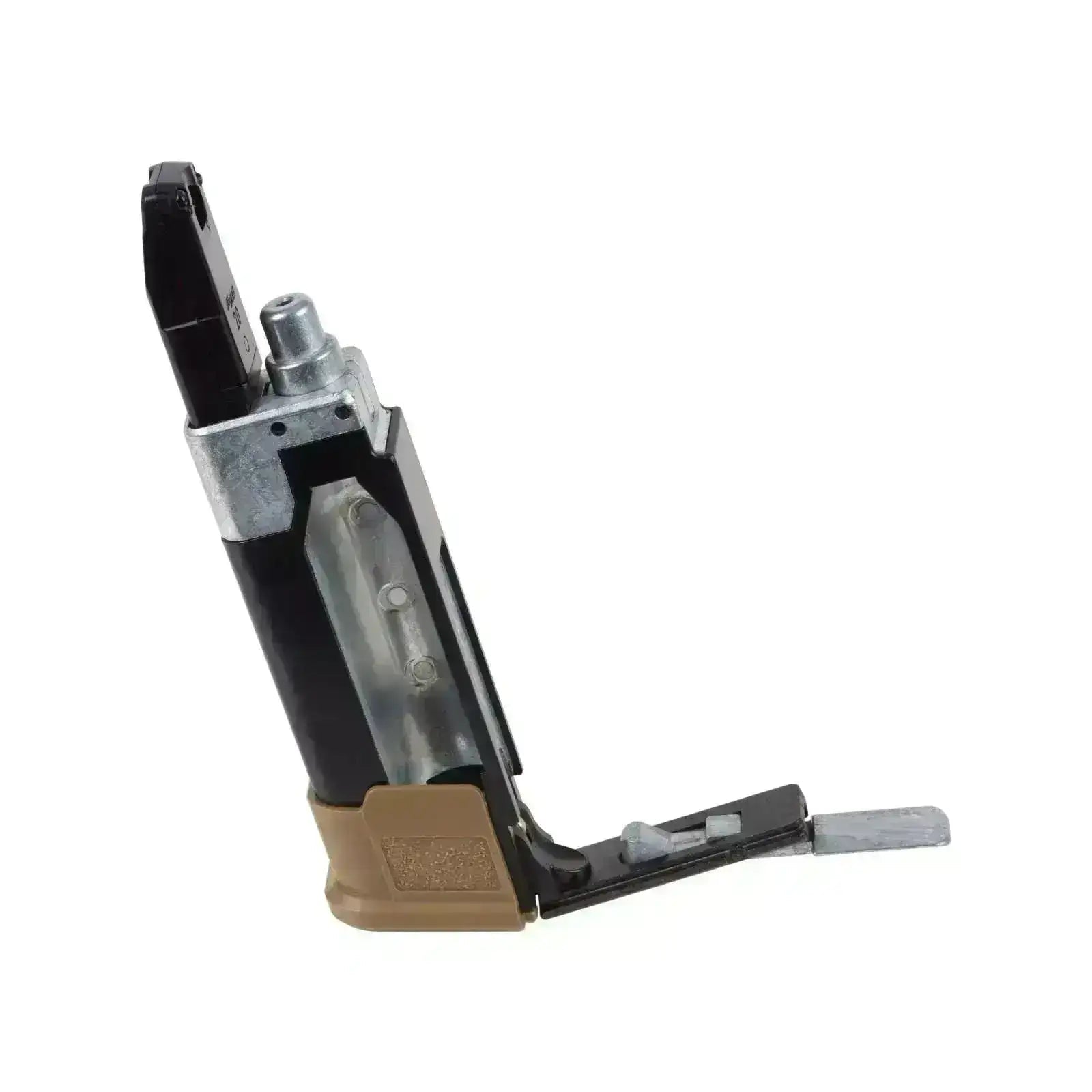 The pistol features a robust metal slide and polymer stock, tactile trigger, and tactical sights. The magazine holds 17 shots, and the blowback mechanism provides a realistic recoil experience with each shot. Powered by a single 12 g CO₂ cartridge (hidden in the grip), the pistol is easy and quick to use.