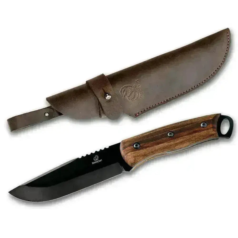 BSH4 is a full-tang knife, meaning it is made from one piece of metal with grip plates screwed on the sides. This makes the knife very solid and is the perfect bushcrafting knife! The grip plates are made of European walnut.