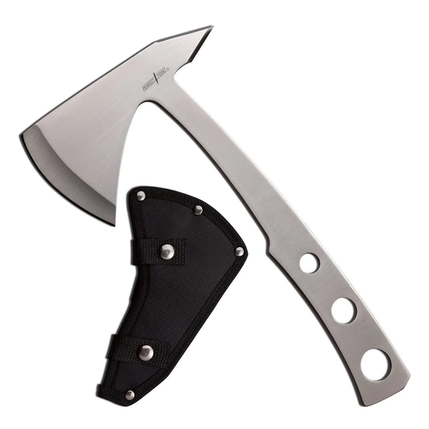 Hele øksen er laget i rustfritt stål med gjennomgående konstruksjon for maksimal styrke og holdbarhet. Det aerodynamiske hodet og skaftet i ett stykke gir jevn vektfordeling og god kontroll i kastet. Den blankpolerte overflaten gir et rent og moderne uttrykk, samtidig som den beskytter stålet mot rust.