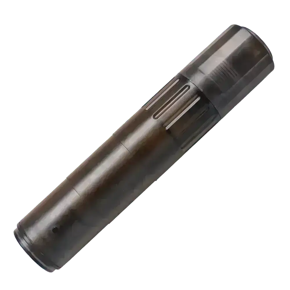 The silencer fits most markers and is attached by placing the silencer on the end of the barrel and tightening the retaining nut until it is secure.