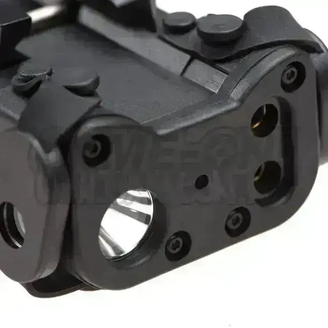 Flashlight and laser unit for 21mm rails. Perfect for airsoft and the like! The unit attaches directly to the 21mm rail and has several modes. Pressure pad included.