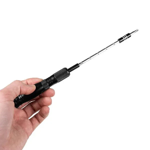 Content: Screwdriver with rotating end for better control Extension for screwdriver – perfect for tight areas 48 bits made of S2 tool steel – known for its shock resistance and durability Precision tweezers for handling small components Valve tool for maintenance of gas magazines Magnetic closure on case for secure storage Why choose this set? Durable S2 steel: The bits are made of S2 tool steel, which is classified as shock resistant and found in other high-quality tool sets. Compact design: Everything is packed in a small, sturdy box that easily fits in your backpack or vest. Field-ready: This set gives you all the tools and the confidence you need to properly disassemble your equipment, even in the field.Specifications: