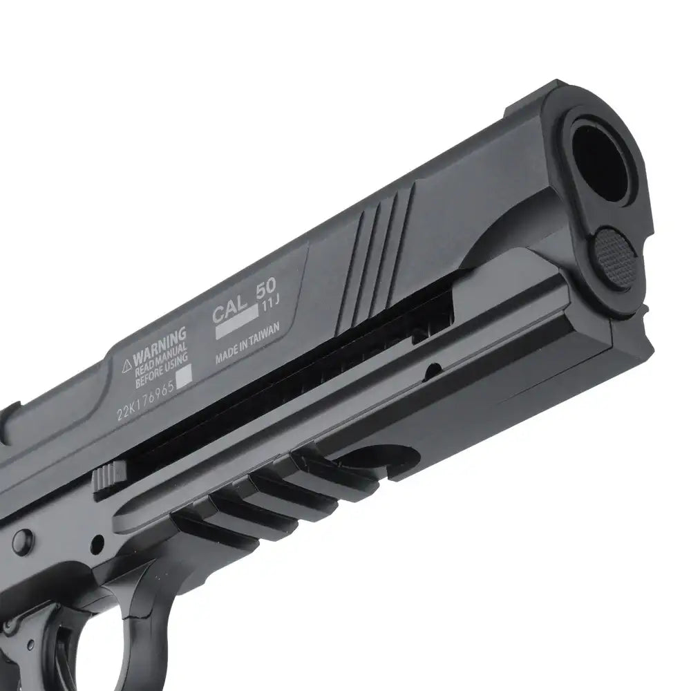 Quick Cap-systemet gjør det enkelt å aktivere CO2-patronen med et enkelt slag, noe som lar pistolen lagres klar til bruk uten at gassen slippes før ønsket. Den doble avtrekkssikringen reduserer risiko for utilsiktet avfyring, og grepet har tekstur for godt hold under aktivitet.