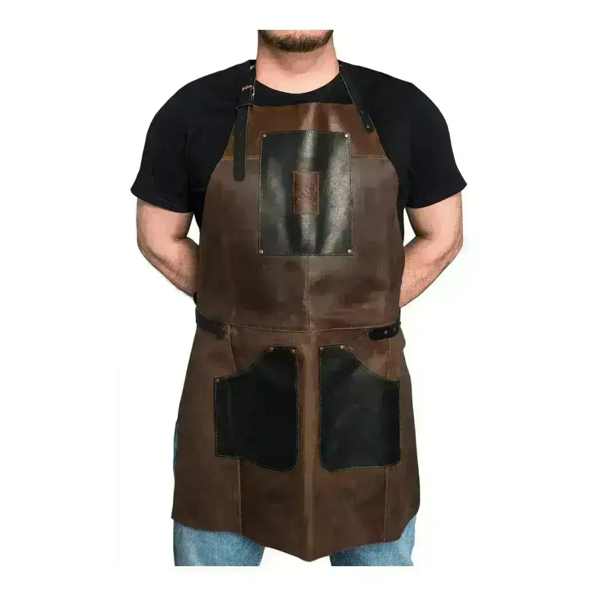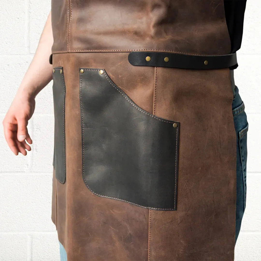 Durable and Stylish Work Apron in Brown and Black Leather – for Creative and Practical Professions