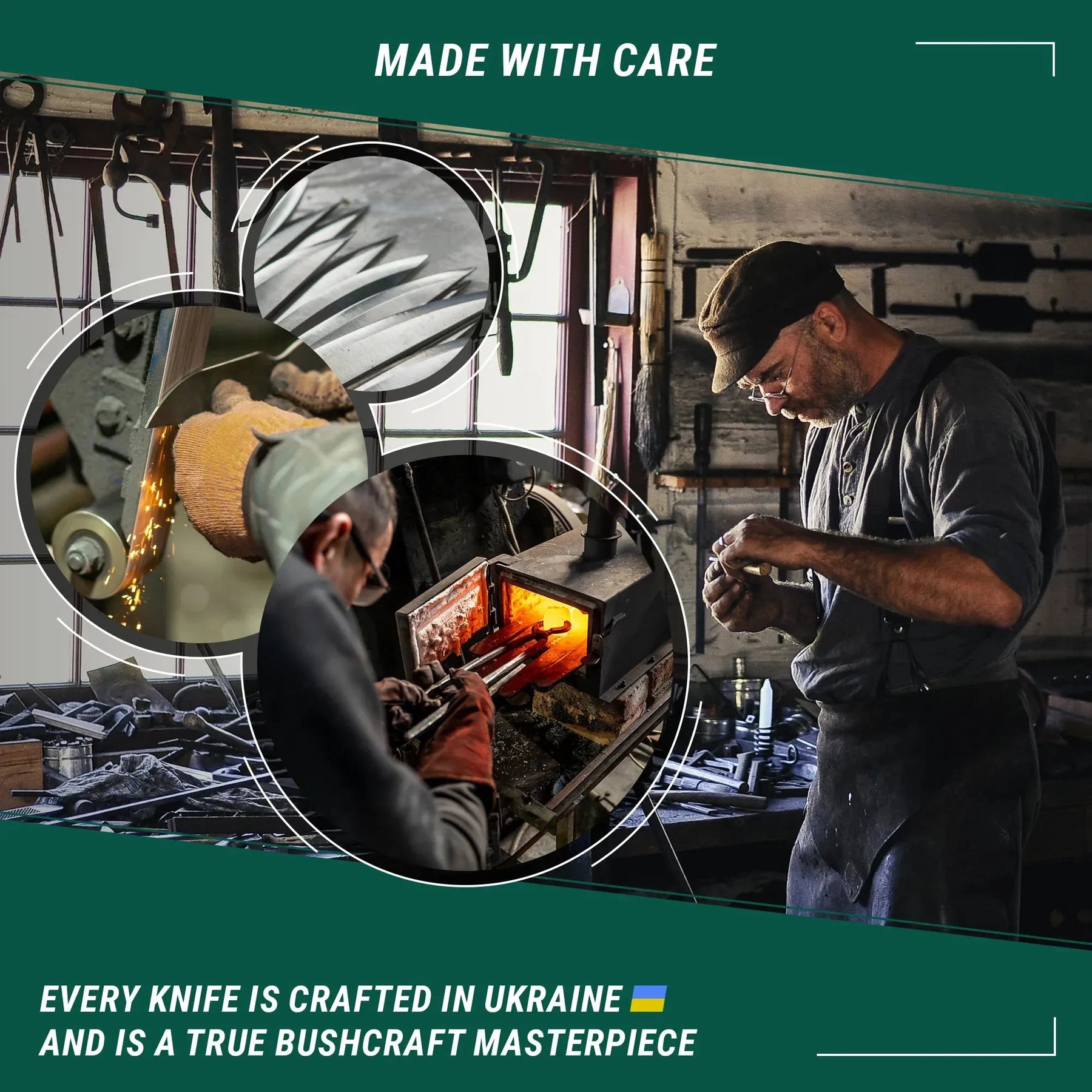 To make the job easier, more efficient, and not least more fun, the right tool is the key! is a Ukrainian manufacturer that makes quality knives and axes from the best materials.Everything comes sharpened and ready right out of the box - Handmade tools that last a lifetime if treated right!