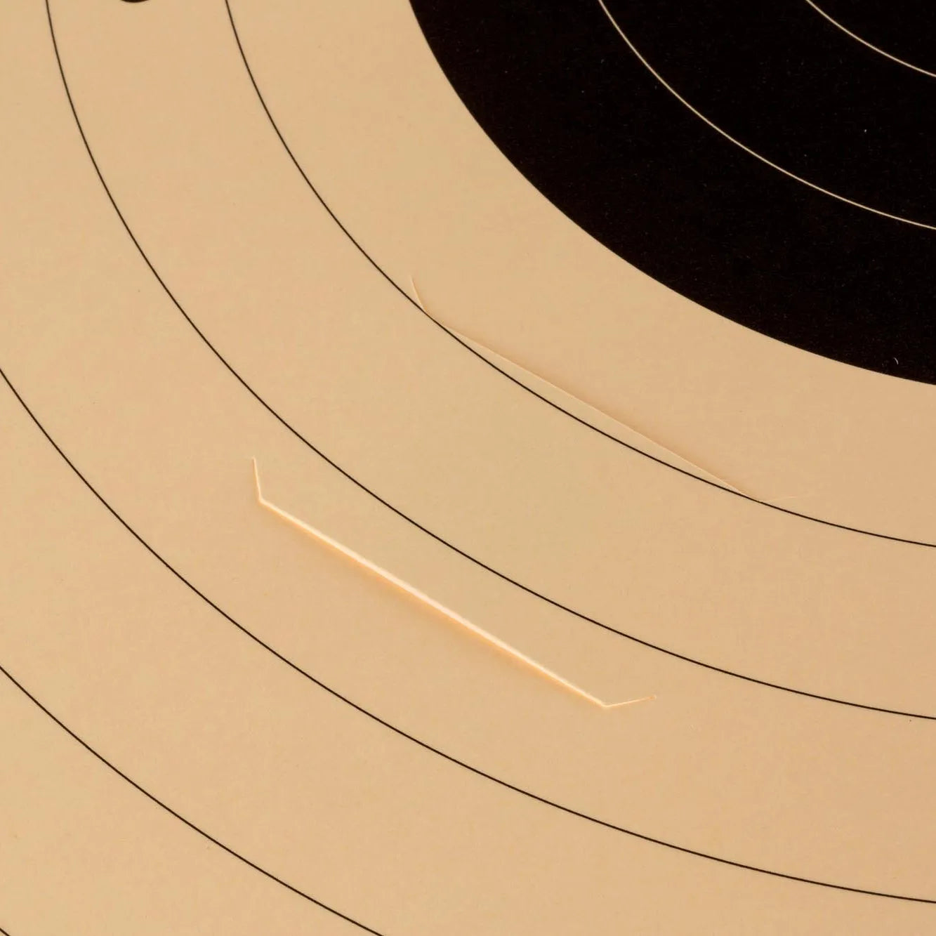 ITU standard targets for pistol shooting at 25 and 50 meters. The targets have a beige background and are approved for competition by both FFT and ISSF. Pre-cut notches make it easy to place target centers of 21x21 cm or 24x24 cm.