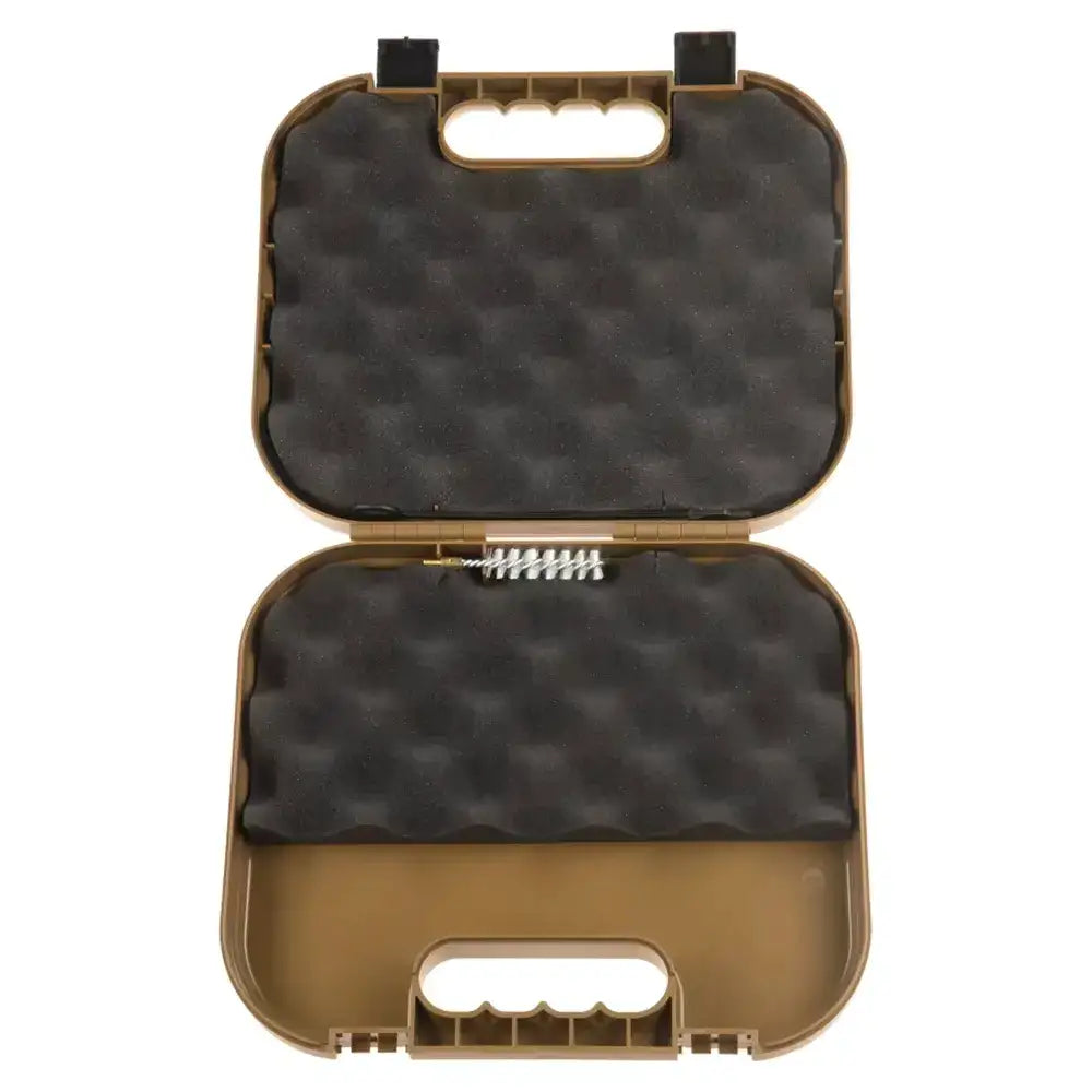 The case has two solid closing flaps - Included in the case is a brush head designed for 9mm barrels.