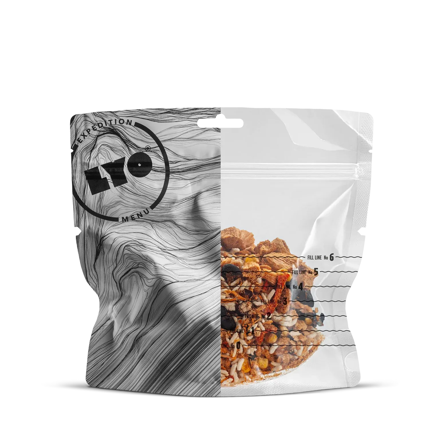 LYOFOOD Mexican Stew – Lightweight dinner for hiking and expeditions Tasty energy in a lightweight format – ready for your backpack LYOFOOD Mexican Stew offers you authentic Mexican flavor on the go in a lighter portion. The combination of beans, rice, corn, bell peppers, and spicy tomato sauce provides a warming and satisfying experience. Made with 100% natural ingredients, without artificial additives, and freeze-dried for low weight and long shelf life. Perfect for short hikes, expeditions, and camping where you want good food without the heavy load.