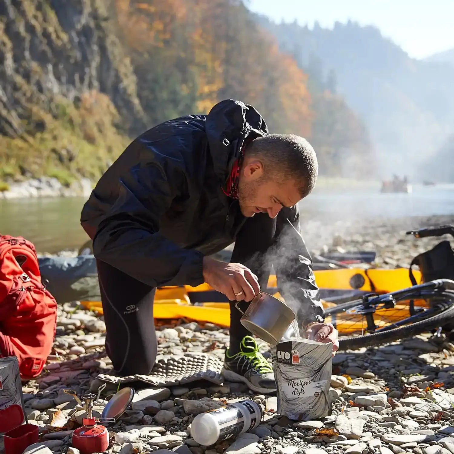 Add boiling water to the bag, stir well and wait 8–10 minutes.Enjoy a spicy, lightweight dinner in the mountains, at camp, or while on the adventure.