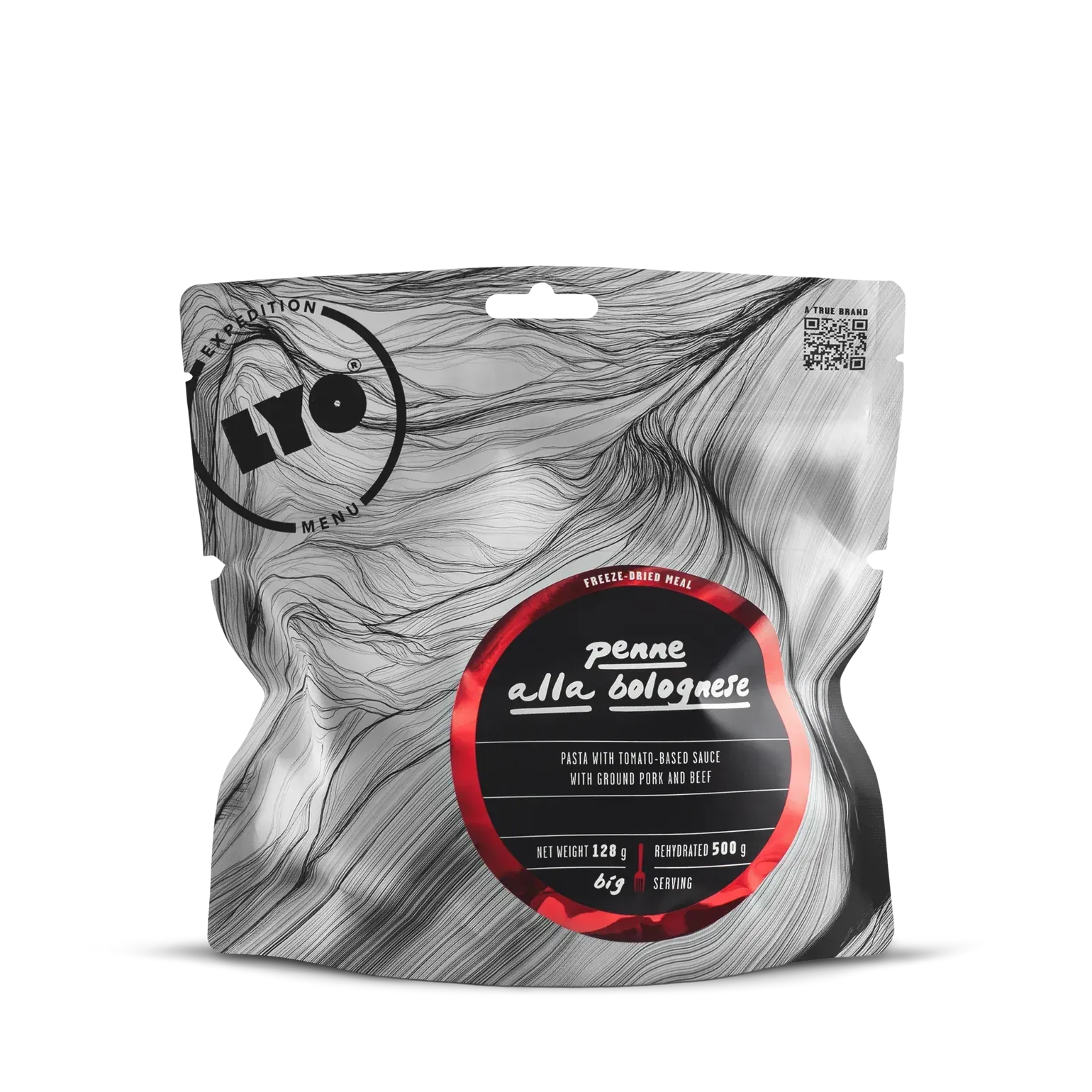 LYOFOOD Penne alla Bolognese is an authentic Italian-inspired pasta dish with penne and rich bolognese sauce. Made with beef, tomatoes, carrots, and herbs, and completely free of artificial additives. This dish offers a real food experience on the go, with low weight and high taste quality. Perfect for mountains, expeditions, or basecamp – wherever you want a warm and real dinner quickly and easily.