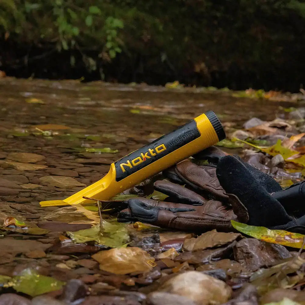 Nokta AccuPOINT er en toppmoderne pinpointer som kombinerer presisjon, teknologi og brukervennlighet i en slitesterk og kompakt enhet. Med fargeskjerm, justerbar følsomhet og trådløs lyd er AccuPOINT laget for deg som vil ha maksimal kontroll – både på land og under vann.