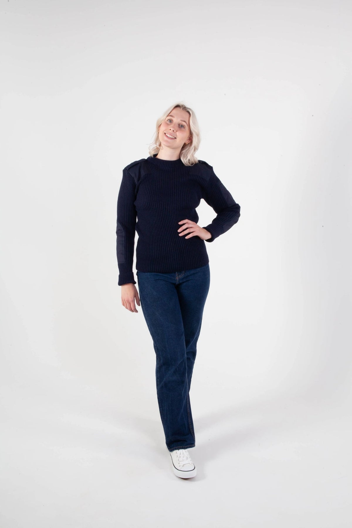 Norwegian NATO sweater navy blue – unisex wool sweater with reinforcements