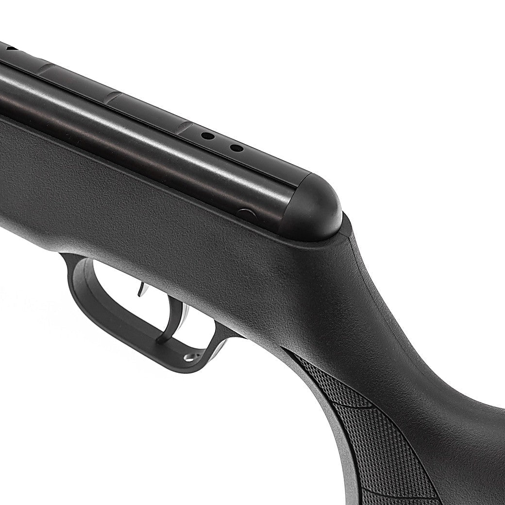 Kraftig knekkgevær med Gas Ram-teknologi og høy utgangshastighet. Snowpeak GR1000S er utviklet for skyttere som ønsker et presist og robust luftgevær til målskyting og hobbybruk. Riflen kombinerer en slitesterk syntetisk kolbe med et kraftig Nitro Gas Ram-system som gir jevn kraft og redusert vibrasjon.