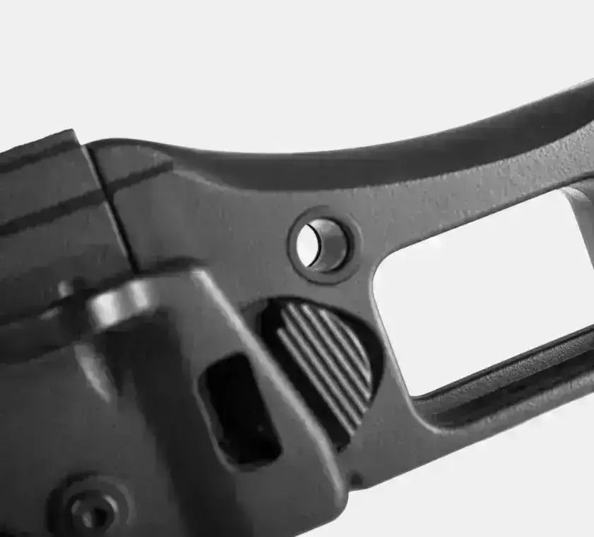 The innards impress (among other things) with a rotating hop-up unit that can be easily adjusted. This will give you Almost "hole-in-hole" accuracy, even at slightly longer distances. This is thanks to the Maple Leaf custom flat bucking and CNC/TDC hop-up chamber, as well as the precision inner barrel also contributes well to exemplary accuracy. A unique mix of high-speed parts gives the rifle continuous, safe operation that can withstand the rigors of airsoft games.