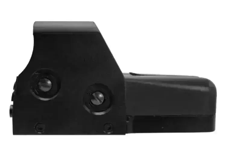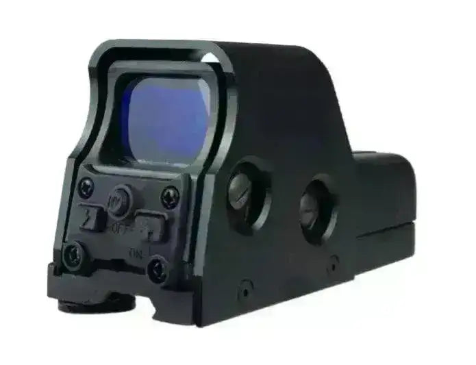 On this holo sight from Swiss Arms, you can choose between a red or green aiming point.