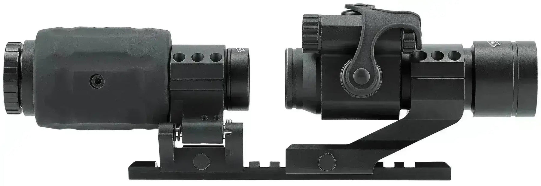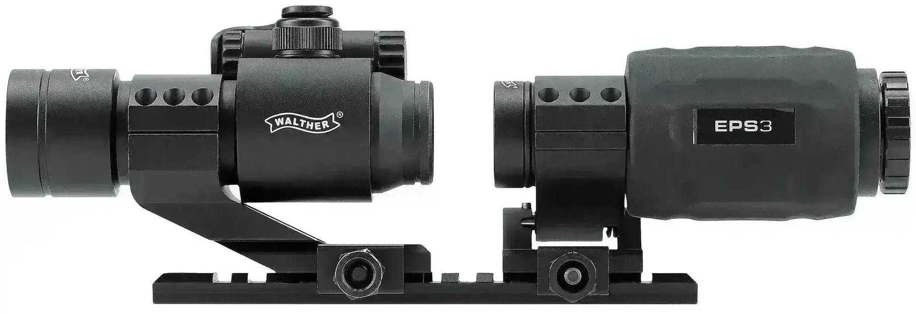 Umarex's MPS (Magnifying Point Sight) is a combination of a good red dot sight, as well as a 3x magnification, which when not in use can be tilted out to the side. This makes this set suitable for almost any occasion, whether in the open field or in CQB situations. The set also comes with a 15.5cm long 21mm rail and an Allen key so you can adjust the red dot sight in the side and height.