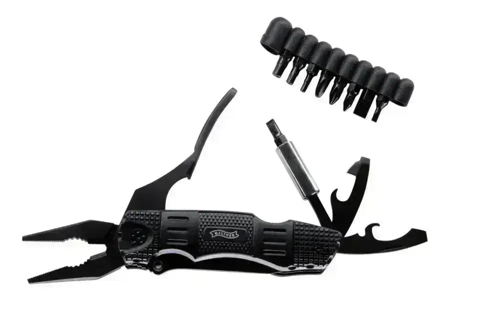 A stylish and tactical everyday and camping knife/multitool from Walther, made of 440 stainless steel. The Walther MTK Multi-Tac is a multi-purpose knife that is designed to withstand all the stresses it encounters whether on a trip or at work. The droppoint blade gives the knife good strength and durability and it folds easily in the linerlock system.