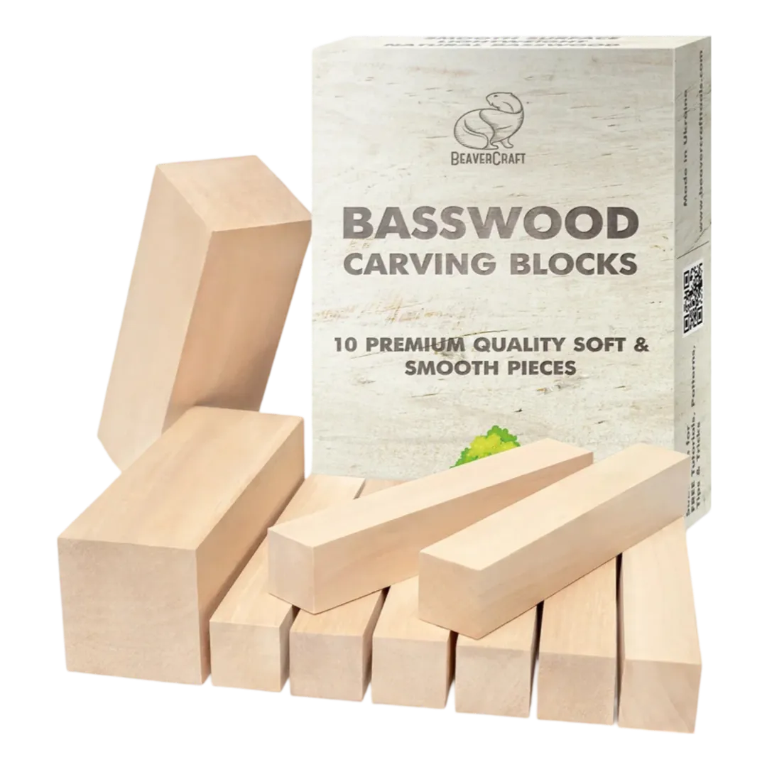 10 træklodser fra Beaver Craft til træudskæring, klodserne er lavet af træsorten lindetræ.