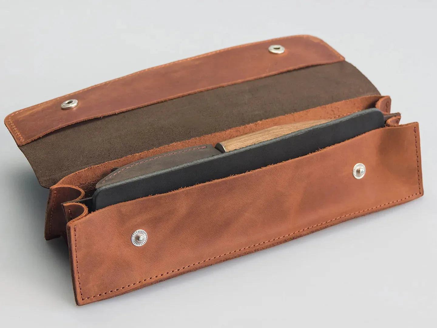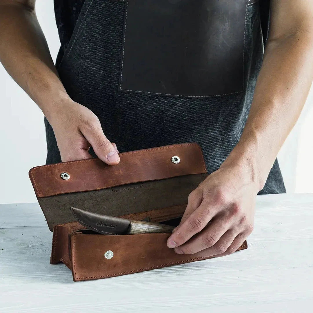 Elegant træskæresæt med 2 knive og et smukt læderetui