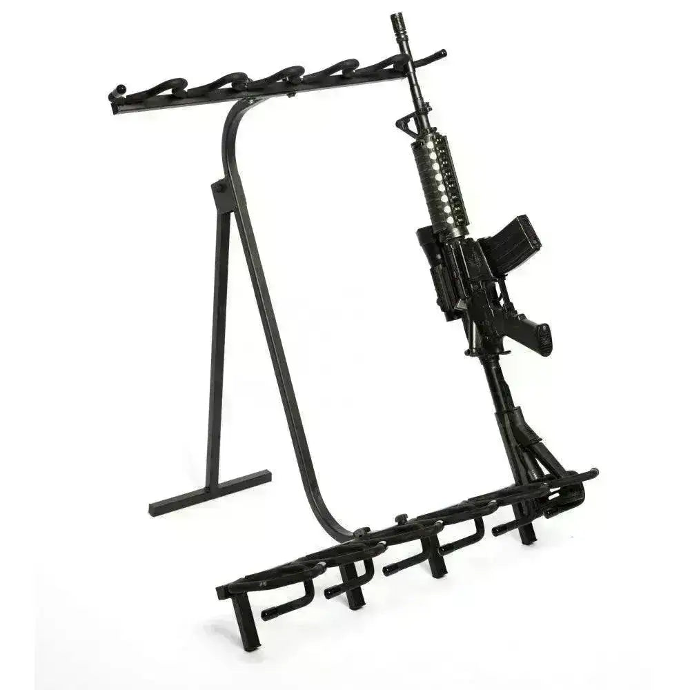 Dette luksuriøse rack er en robust og elegant løsning til sikker opbevaring og præsentation af dine rifler. Med plads til op til seks pistoler er den ideel til både hjemmebrug og butiksfremvisning. Stativet er næsten udelukkende lavet af stål, hvilket giver høj stabilitet og lang levetid.