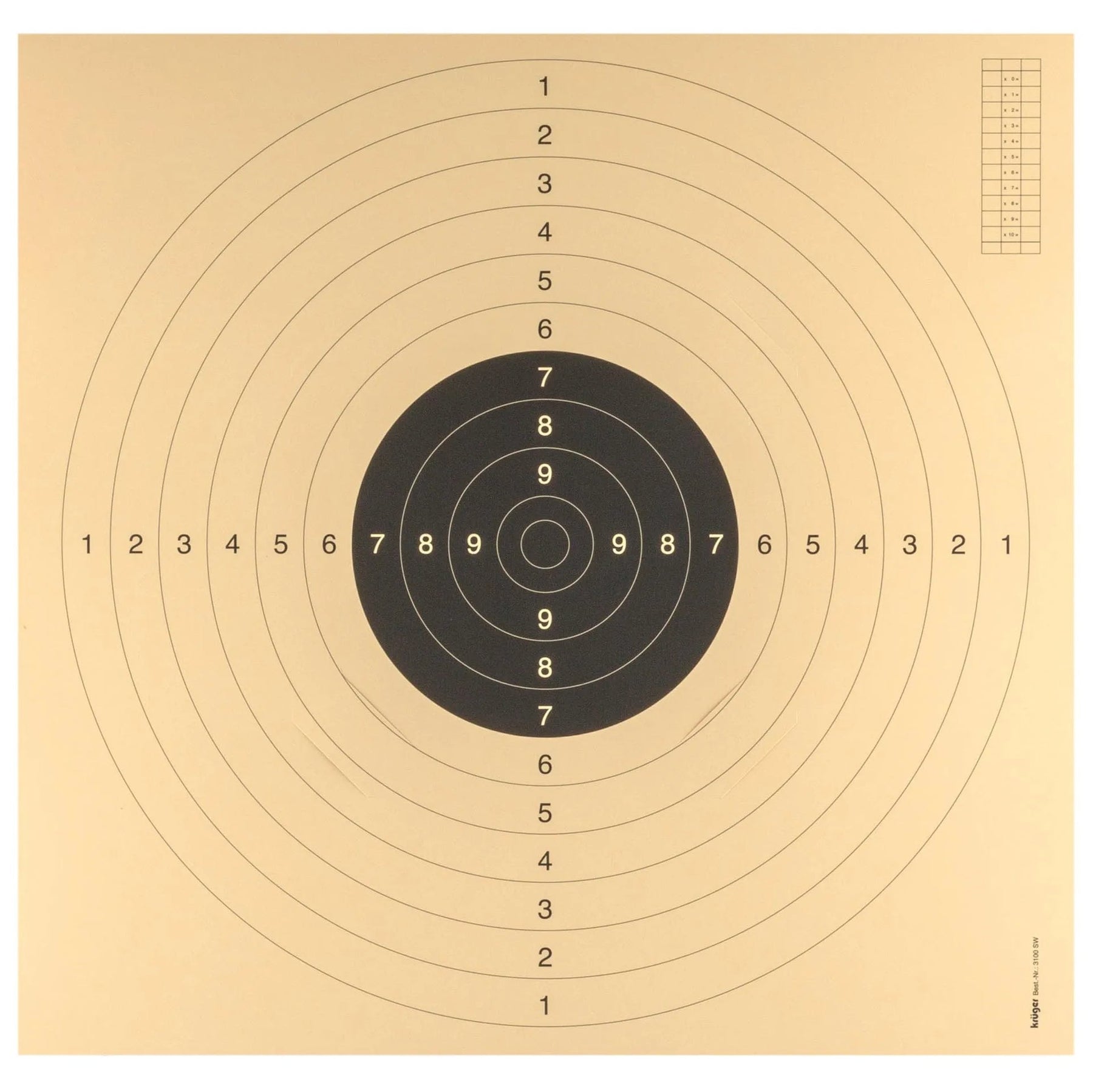 ITU standardmål for pistolskydning på 25 og 50 meter. Skiverne har en beige baggrund og er godkendt til konkurrencer af både FFT og ISSF. Forudskårne hak gør det nemt at placere målcentre på 21x21 cm eller 24x24 cm.