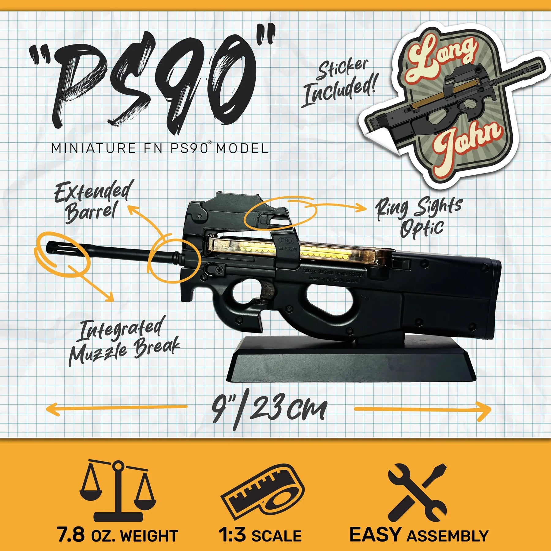 FN PS90 Carbine Model er produceret med licens fra FN Herstal og er en ideel gave eller supplement til enhver samling af moderne våbenreplikamodeller. Den har ingen skydefunktion og er kun ment som en dekorativ replika.