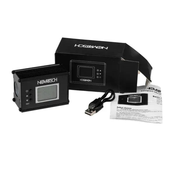 Din personlige kronograf – altid i lommen Novritsch Compact Chrono er en kompakt og brugervenlig kronograf, der giver dig nøjagtige målinger af hastighed og energi på dine airsoft-replikaer. Med understøttelse af både FPS, MPS og Joule, samt mulighed for at konfigurere BB-vægt og diameter, er dette et uundværligt værktøj for enhver airsoft-entusiast. Den baggrundsbelyste skærm sikrer god læsbarhed under alle lysforhold, og den automatiske dvalefunktion sparer batteri, når enheden ikke er i brug.Produktvideo