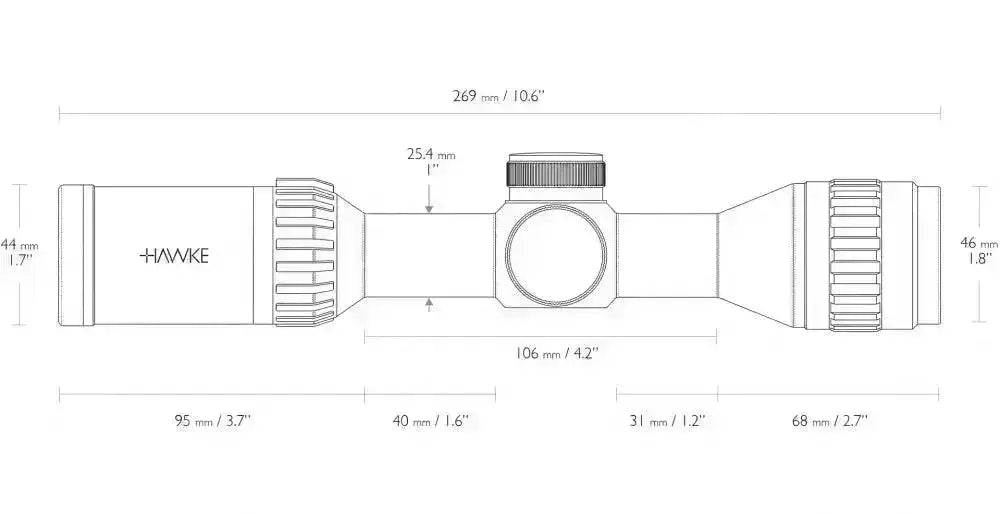 16-lags fuldt belagt optik for klar sigtelse. AMX sigtemiddel-ætset glas, der kan modstå meget rekyl og har parallaxjustering. Dette kikkertsigte tilbyder et meget klart synsfelt, solid konstruktion og variabel zoom fra 2-7x.