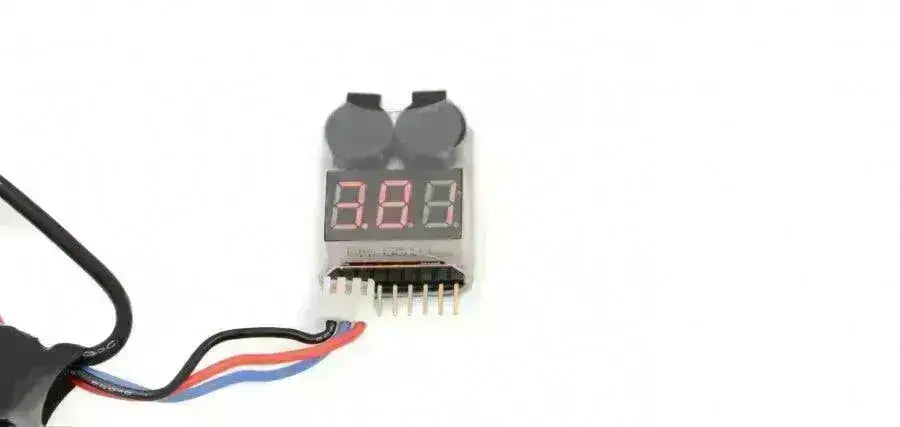 Du tilslutter blot dette til balanceporten på dit LiPO-batteri, og så udsender det information. Den fortæller dig først batteriets samlede spænding, derefter spændingen pr. celle. Når spændingen er under 3,3 V pr. celle, begynder bilens lys at blinke, og en alarm begynder at bippe!