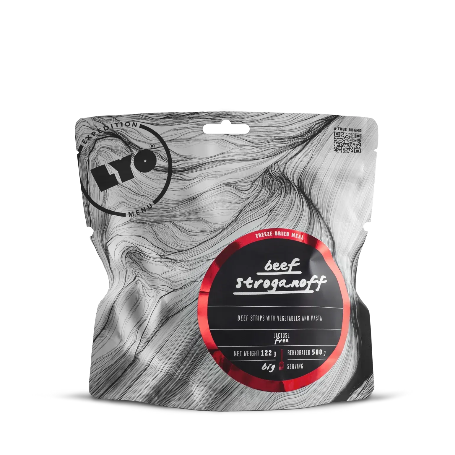 LYOFOOD Oksekød Stroganoff giver dig en ægte smagsoplevelse med møre oksekødsstykker, svampe og en cremet paprikasauce. Perfekt til dem, der ønsker en varmende og nærende aftensmad på farten. Retten er lavet med 100% naturlige ingredienser, ingen konserveringsmidler og frysetørret for lav vægt og lang holdbarhed.