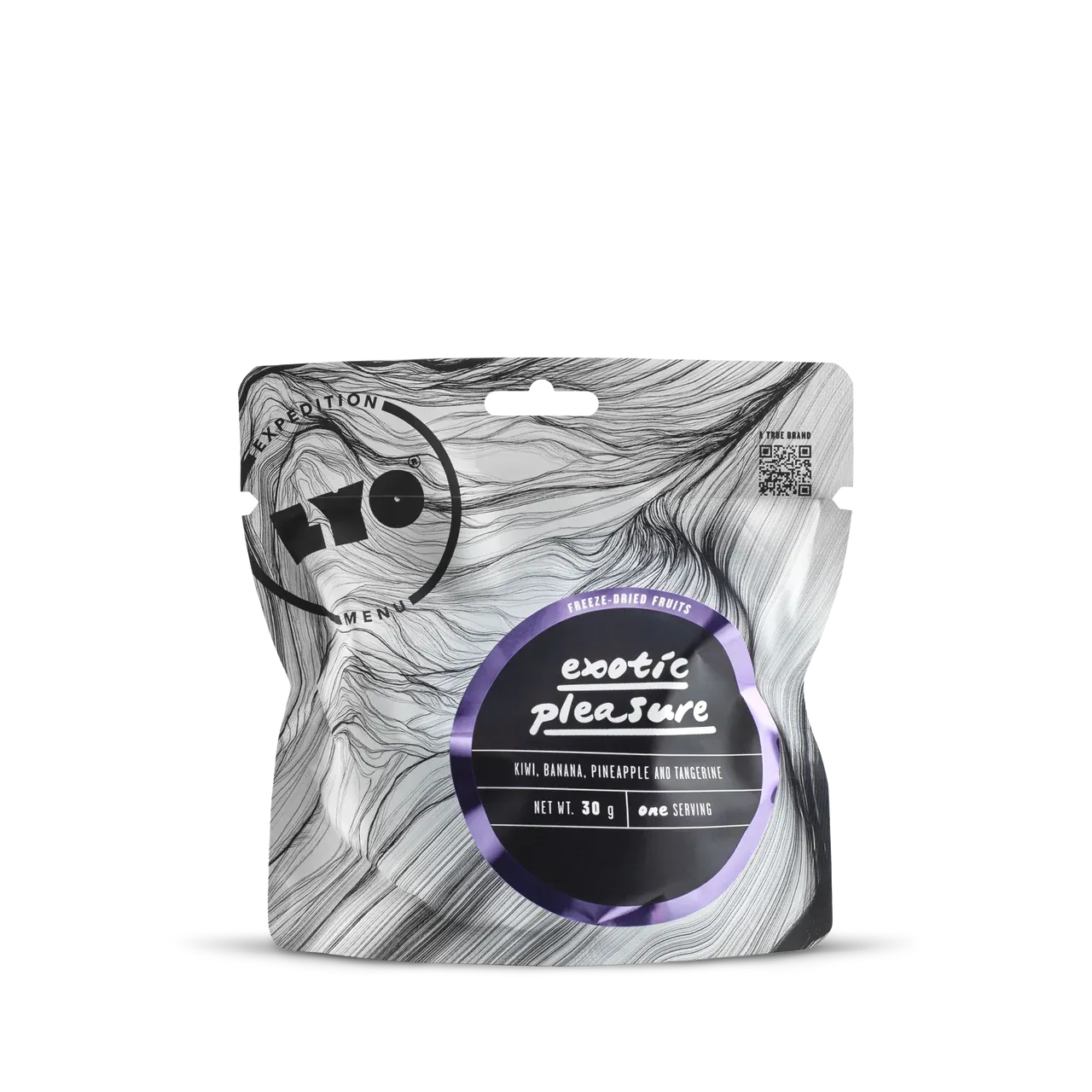 Tag smagen af ferie med dig, uanset hvor du tager hen! Exotic Pleasure er en tropisk blanding af kiwi, banan, ananas og mandarin – 100% naturlig og uden tilsætningsstoffer. Nyd den direkte fra posen, som en snack, eller bland den i smoothies, morgenmad eller dessert. Perfekt til bjergvandringer, strandture eller regnfulde dage, hvor du længes efter sol.