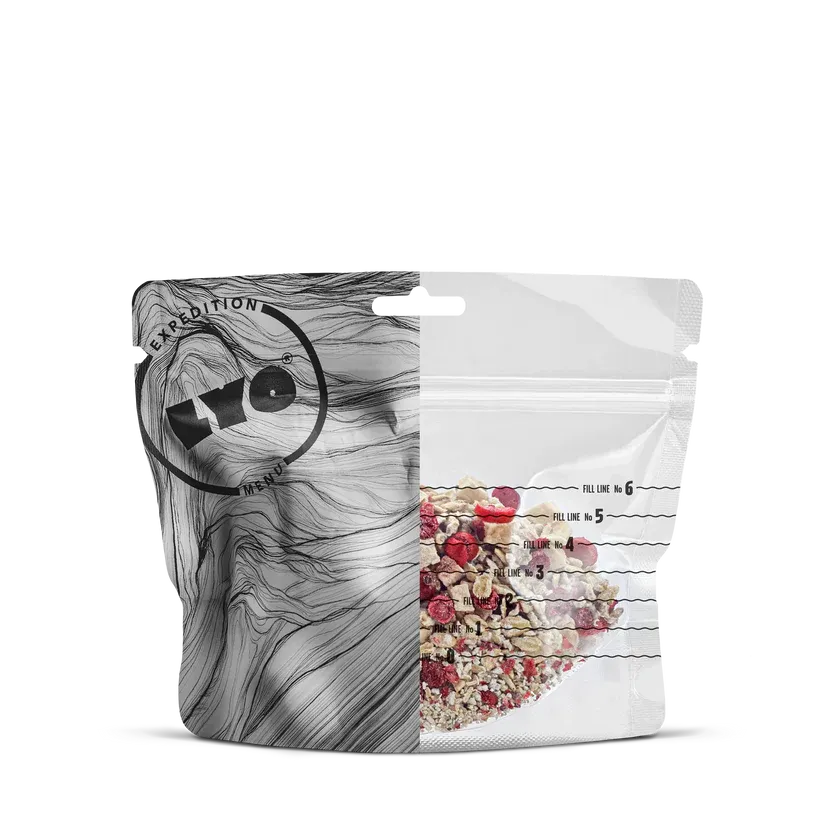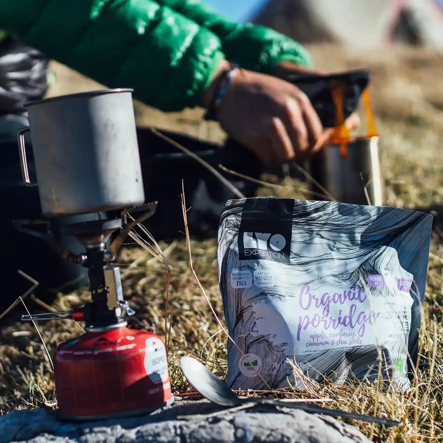 LYOFOOD Æble- og Kanelgrød er en mild og velsmagende grød med æble, rosiner, havregryn og kanel - helt uden tilsat sukker. Den er lavet af 100% naturlige ingredienser og er perfekt som en hurtig og nærende morgenmad på en bjergvandring, ekspedition eller camping. Grøden er glutenfri og vegansk, og giver en langvarig mæthedsfornemmelse med god smag og aroma.