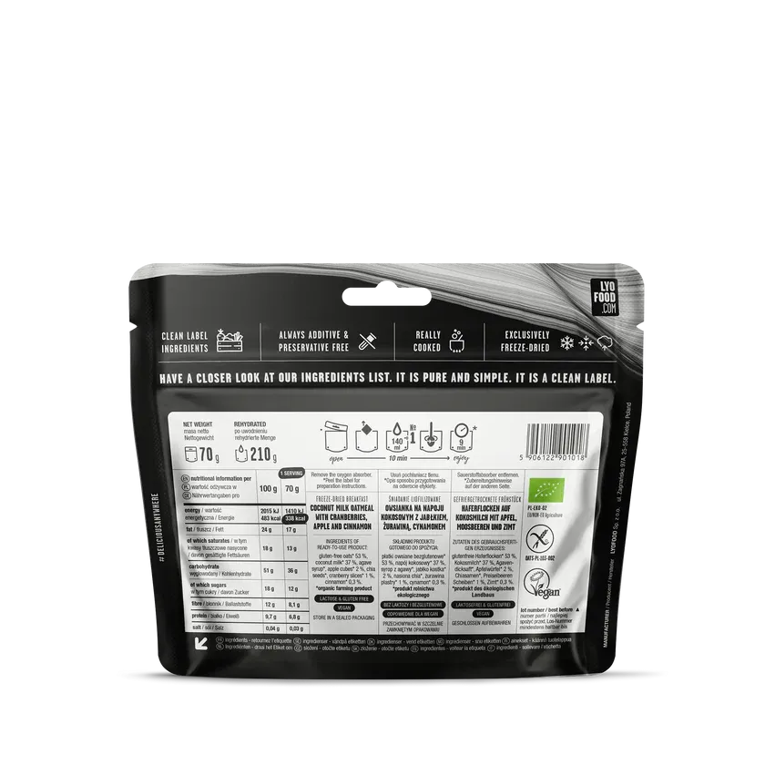 Lyofood Apple og Cinnamon Porridge- Gluten-fri morgenmad med naturlige ingredienser