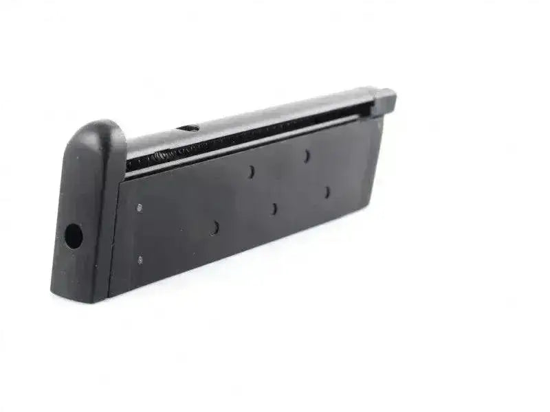 Airsoftmagasin der indeholder softgungas og 6 mm airsoft BB'er.