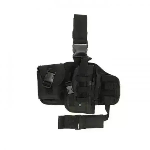 Dette lårhylster er ikke et traditionelt lårhylster, det er et "benpanel" med et aftageligt pistolhylster fastgjort til det. Selve panelet er lavet af nylonfiber og er udstyret med MOLLE-beslag, så du kan fastgøre ethvert MOLLE-tilbehør, du ønsker, til dit lår. Pistolhylsteret, der er monteret på den, passer til de fleste pistoler og kan nemt fjernes, hvis du for eksempel hellere vil bruge den løs som bæltehylster og bruge panelet til noget andet.