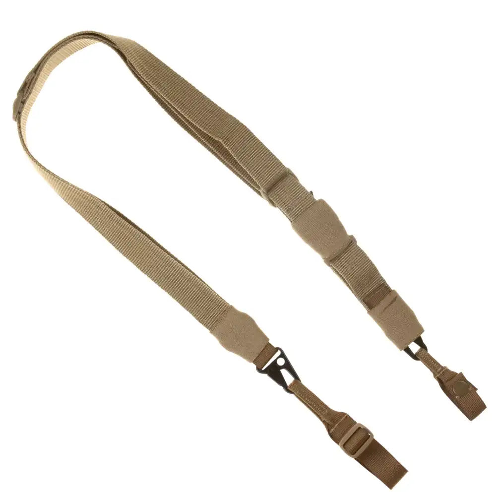TX-3 justerbar pistolrem. Remmen er brun i farven og har metalklips og snore, der giver dig mulighed for at fastgøre remmen på flere måder. Du kan fastgøre klipsene til hinanden for at lave en 1-punkts strop.