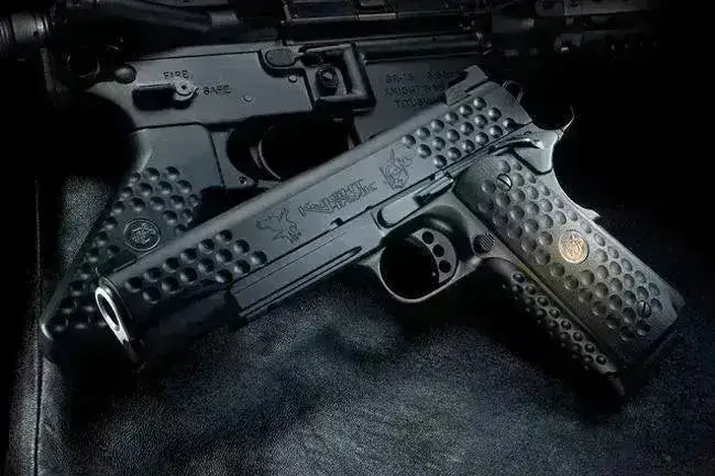 Stilfuld softgun-kopi fra 1911 med blowback. Dette er pistolen for jer, der elsker den klassiske Colt-pistol, men ønsker en mere taktisk følelse - matsort farve med "golfbold"-mønster i slæden og grebet får den til at skille sig ud og giver et godt greb både omkring slæden og pistolgrebet.